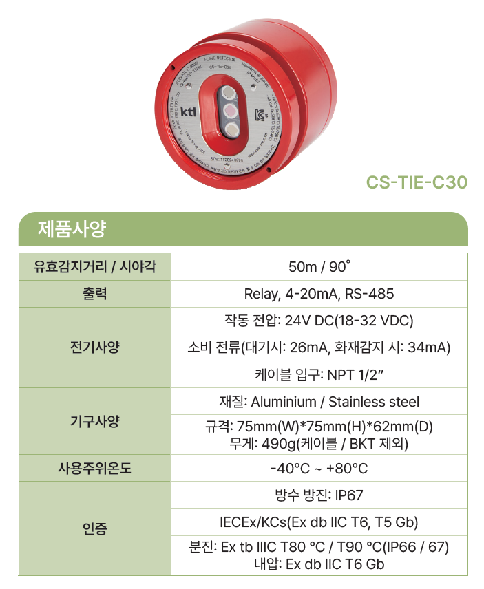 가. 감지기 종류 : 3 파장 적외선 불꽃감지기